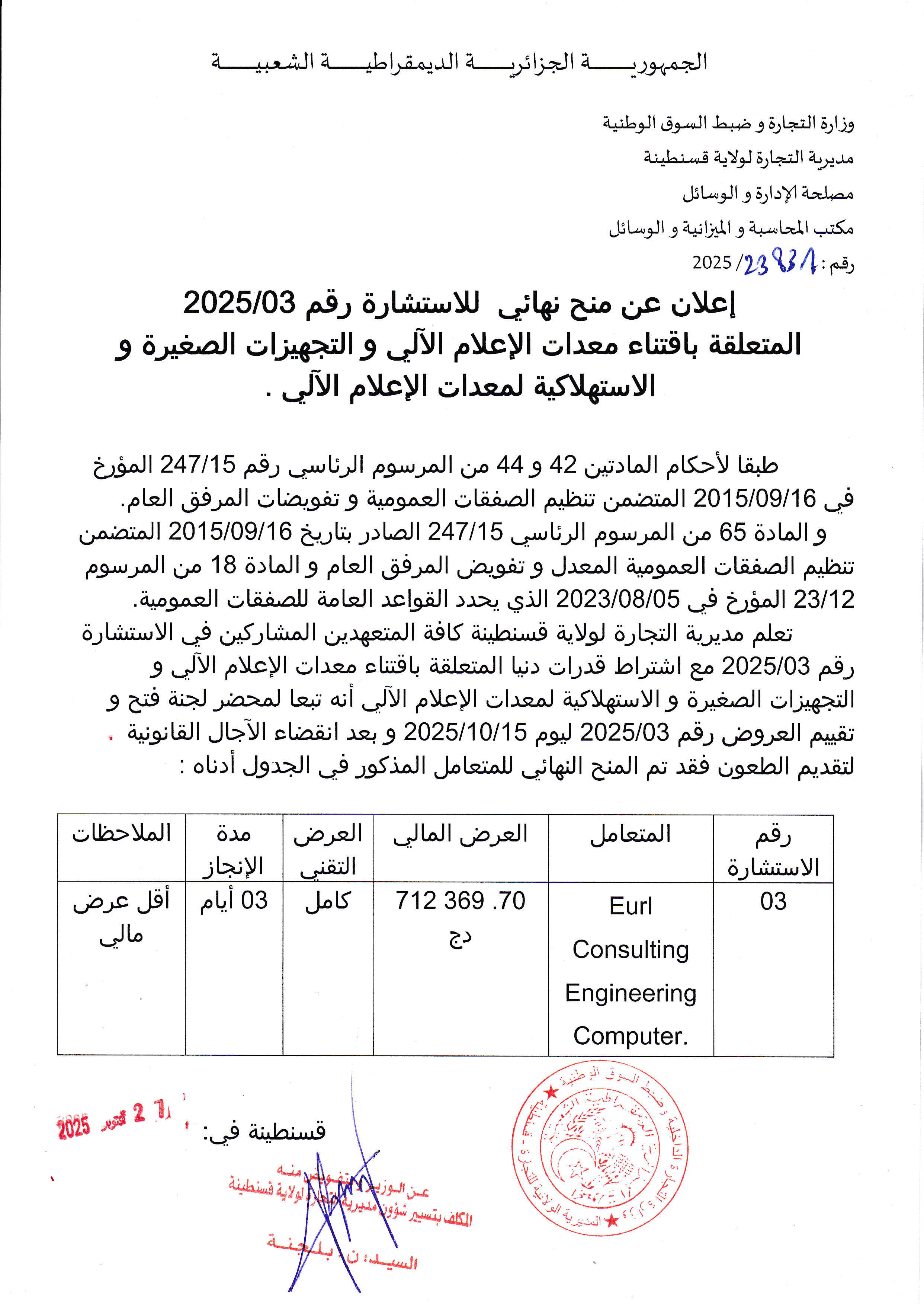 منح نهائي للإستشارة رقم 2025/03